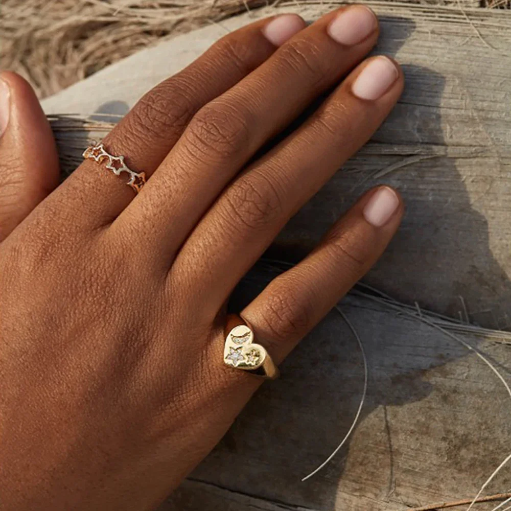 Um anel que une delicadeza, brilho e significado. Sua beleza atemporal combina com qualquer look — do casual ao sofisticado — e mantém o charme de uma joia eterna.